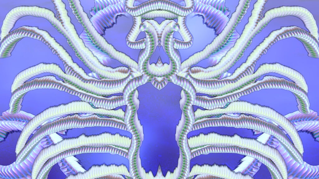 »Radiant Futures« brings together six video works that present speculative visions of a post-human age. Between AI-generated worlds, fluid identities and hybrid life forms, the artists negotiate new alliances between humans, nature and technology. Inspired by the decentrally organised nervous system of the octopus, real and fictitious microorganisms and logics shaped by social media, scenarios are created in which linear thinking is replaced by complexity. The works reflect a world in flux, in which reality dissolves and recomposes itself – between surface and depth, body and data, memory and simulation. Video serves as a tool of the imaginative: for futures that are as tantalising as they are disturbing.